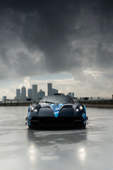 This special Huayra Roadster BC utilizes the BAPE® ABC CAMO pattern in shades of blue inside the car on the seats and the roof. Additionally a set of coordinated luggage and sports clothes including a tracksuit and gloves, were developed with the camo pattern. For the launch of the capsule collection, the body of this special Huayra Roadster BC was wrapped with the camo pattern, further linking the car to the line of apparel. The BAPE® name also appears on the dedication plate of the Hypercar as the mark of a continuing collaboration.