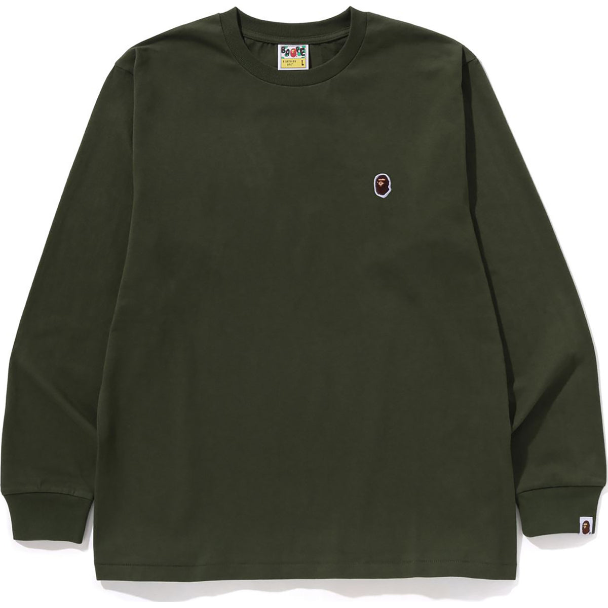 BAPE MENS COTTON ONE POINT LONG SLEEVE T-SHIRT provides a comfortable fit . Crafted from authentic cotton from the USA, it showcases the iconic ONE POINT APE HEAD logo and comes in a variety of colors and sizes. An essential classic for any A BATHING APE fan.