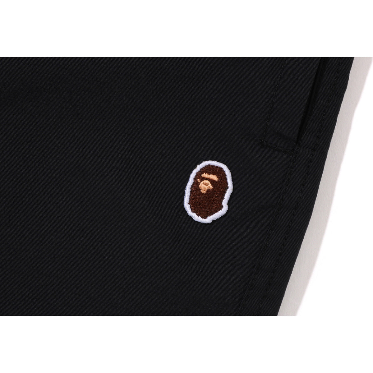 BAPE MENS POLYESTER APE HEAD BEACH SHORTS is crafted with a durable polyester Mesh lining, these beach shorts offer exceptional breathability. A bold APE HEAD logo patch is featured on the left thigh, and the waist can be easily adjusted for the perfect fit with its drawstring design. Available in both black and burgundy, these shorts are cut in a regular fit to suit your style.