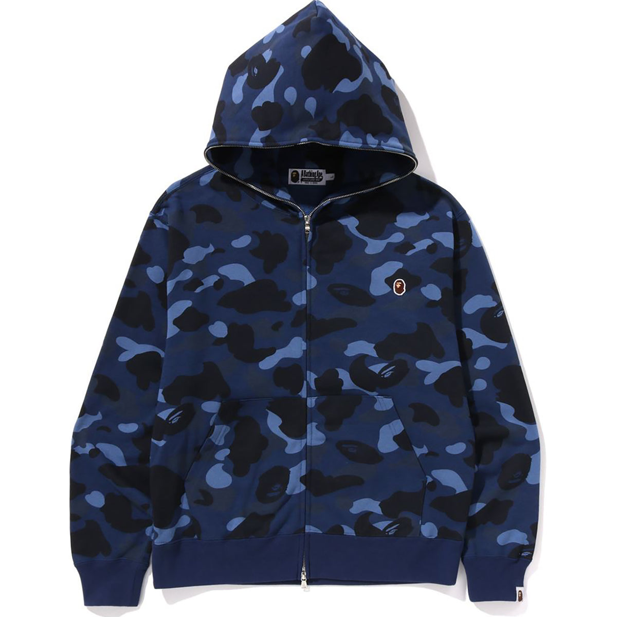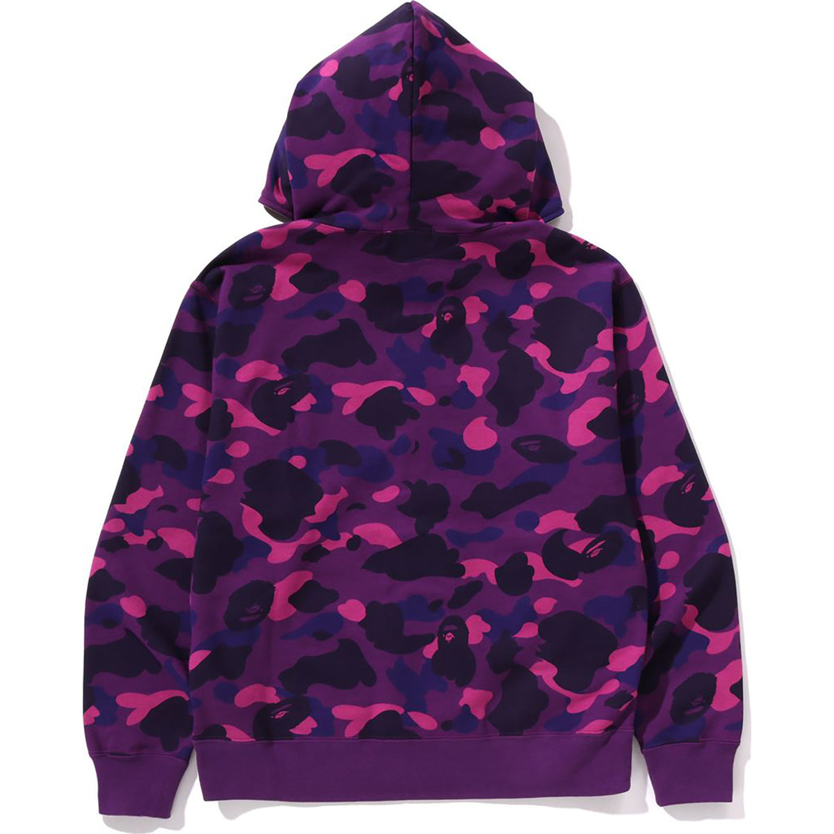 BAPE MENS COTTON ONE POINT COLOR CAMO CROPPED FULL ZIP HOODIE JACKET showcases a distinctive COLOR CAMO design, highlighted by an APE HEAD patch positioned on the left chest. Its cropped cut provides a laid-back, contemporary silhouette. Offered in black, blue, and purple, this hoodie comes in sizes ranging from S to 2XL, making it an ideal choice for the fall season.