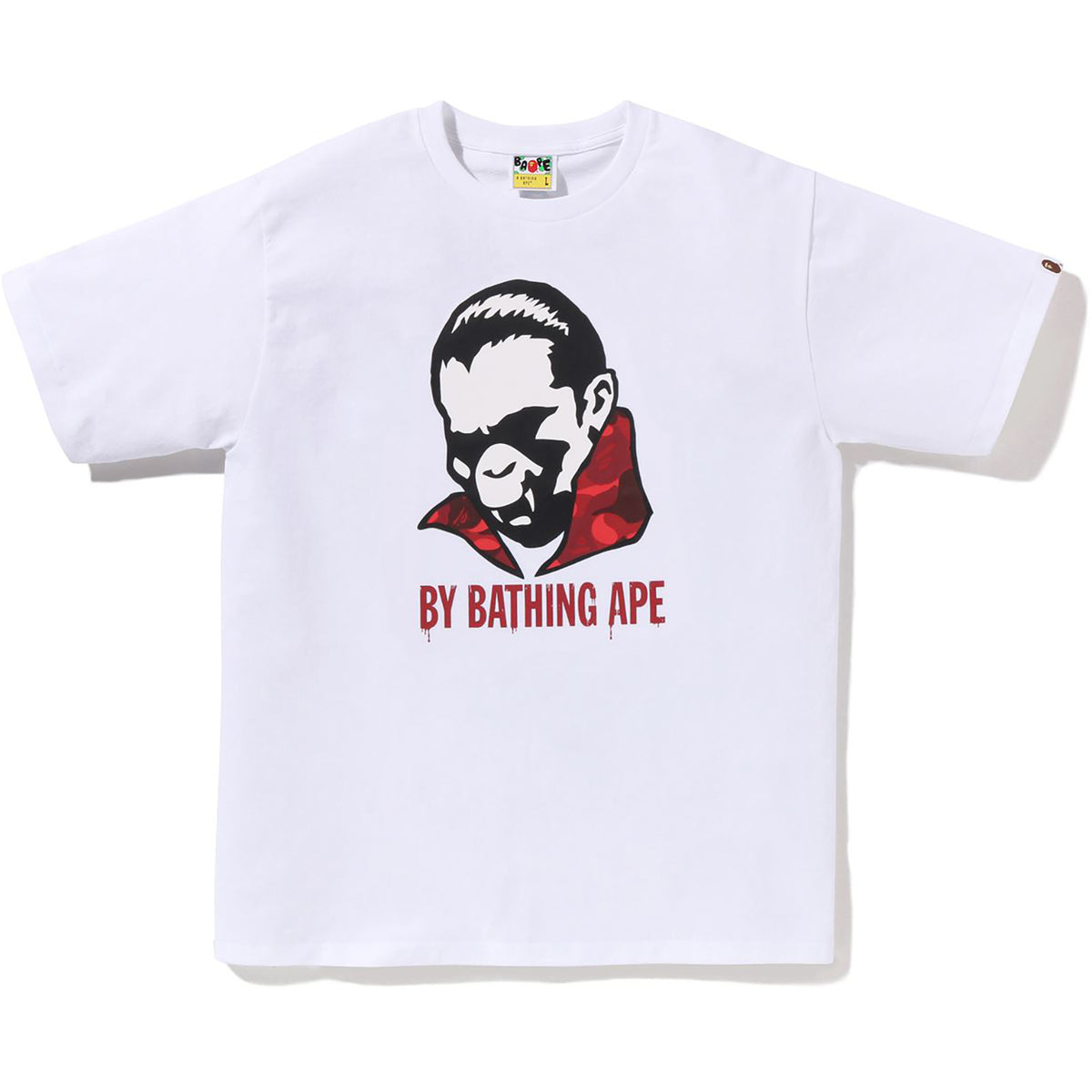 BAPE introduces fresh Halloween-inspired apparel showcasing spooky motifs with the brand's unique flair. For FW 2025, this cozy short-sleeve T-shirt is made from soft cotton jersey. It displays a rubber-printed vampire graphic on the front, proudly branded BY BATHING APE. Its regular fit suits layering or wearing on its own comfortably.
