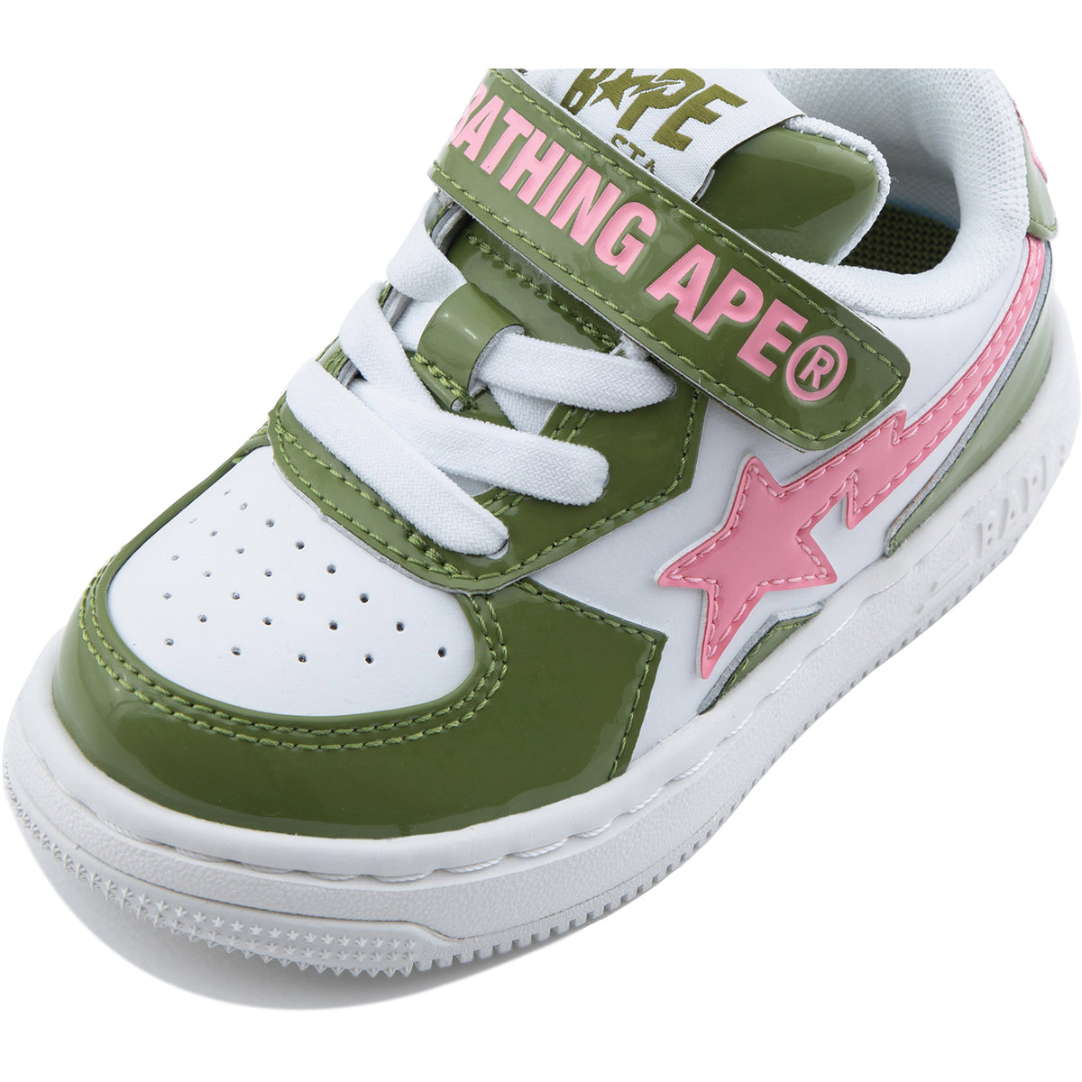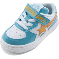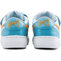 The BAPE STA ICON KIDS #1 shoes come in three bright colors perfect for summer. Choose from olive green with pink, sky blue with orange, or two shades of gray. These shoes add a fun, stylish touch to any outfit while showing off your unique style.