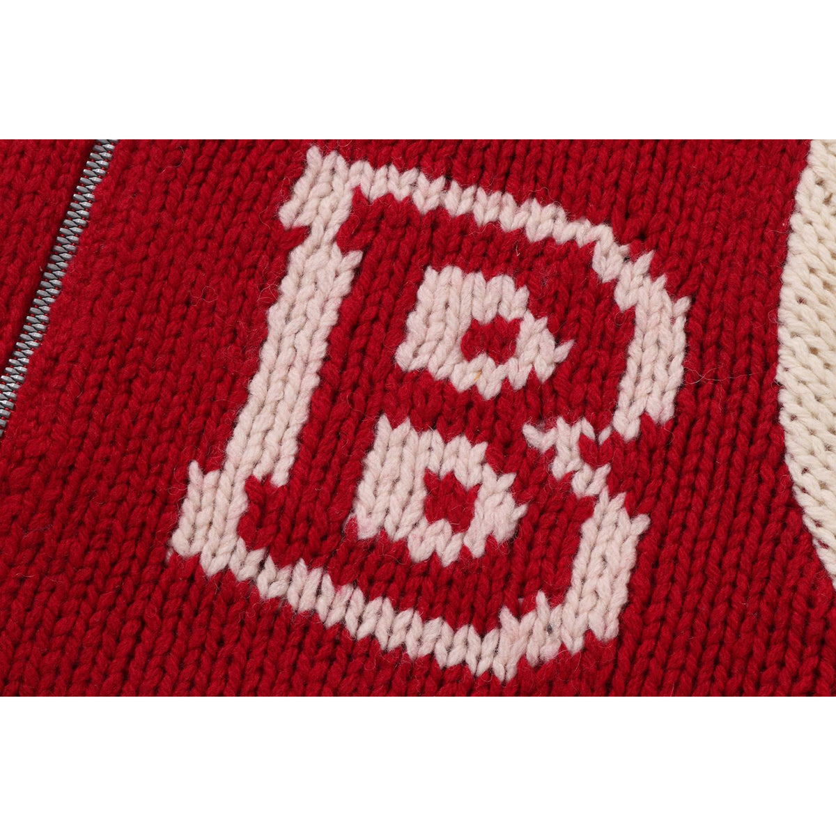 This Cowichan cardigan blends the classic varsity jacket style with the warmth of Shetland wool. It showcases embroidered logos and motifs for a distinctive look, a zippered front for easy wear, and practical front pockets. The contrasting sleeves and body add a fashionable touch while maintaining a comfortable regular fit.