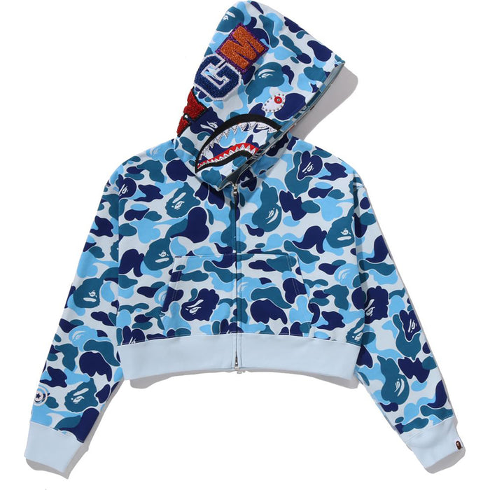 ABC CAMO CRYSTAL STONE SHARK CROPPED FULL ZIP HOODIE LADIES