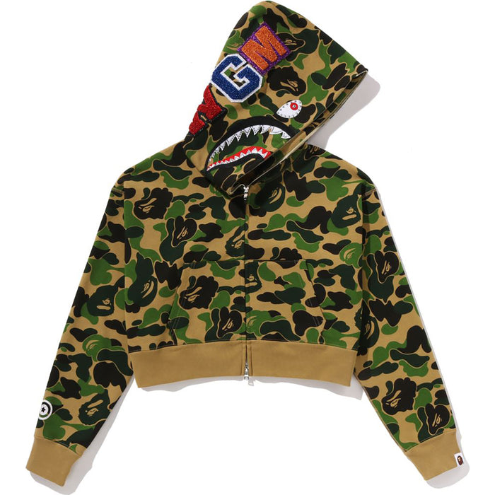 ABC CAMO CRYSTAL STONE SHARK CROPPED FULL ZIP HOODIE LADIES